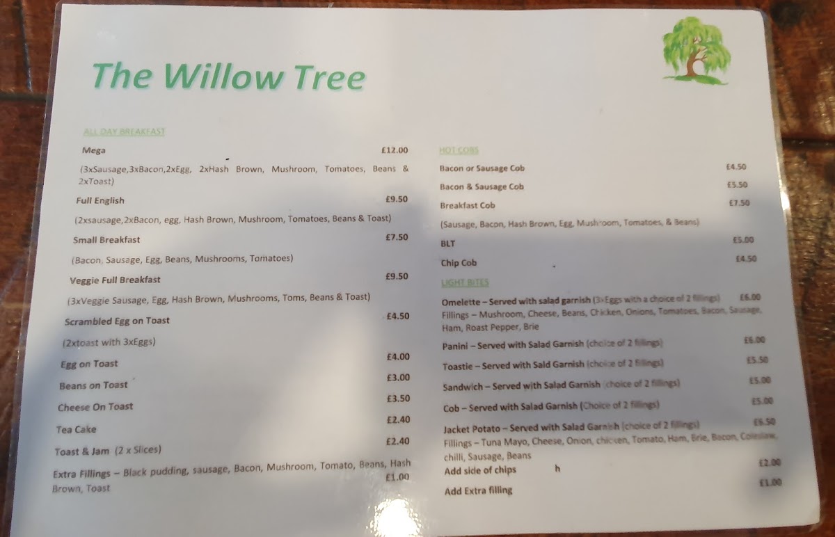 Located in the heart of Burton Joyce, The Willow Tree Tea Room offers a delightful blend of hearty breakfasts, fresh sandwiches, and inviting treats. Begin your day with a generous Full English breakfast or a tasty scrambled egg on toast for a perfect start. The all-day breakfast options, priced from £4.00 to £12.00, ensure there's something for everyone.